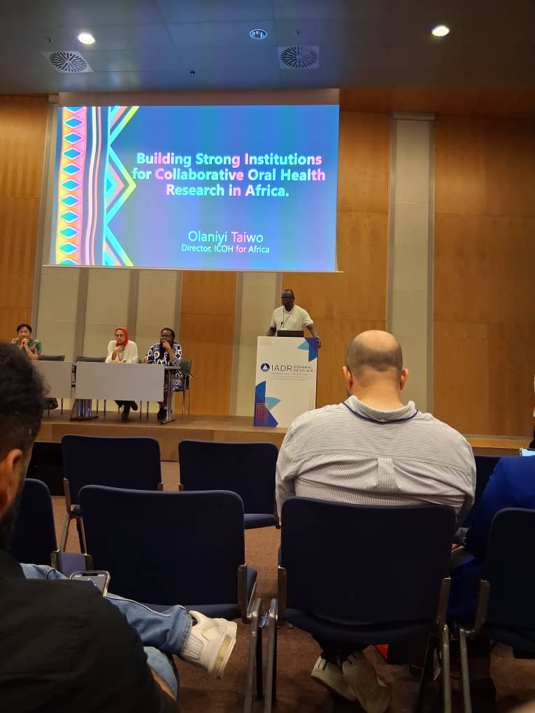 Dr. Olaniyi Taiwo, Director of ICOH, delivered a compelling presentation titled “Building Strong Institutions for Collaborative Oral Health Research in Africa.” His address emphasized the importance of strengthening partnerships and developing sustainable strategies to advance oral health equity.